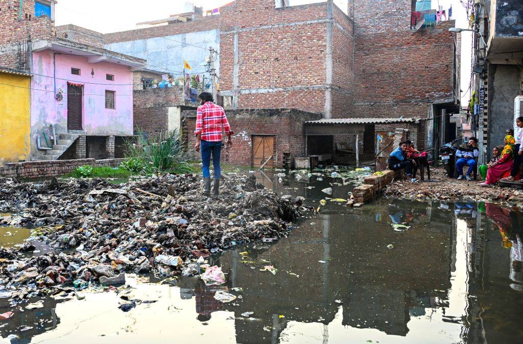 The concern is especially acute in the lower-lying parts of the enclave, where more than 300 houses have ground floors situated 1 to 2.5 feet below street level. Even a slight rise in water levels could push filthy water into homes and narrow lanes.