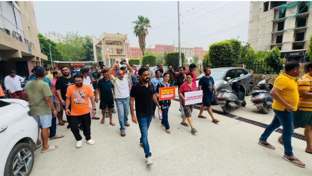 Residents of La Residentia Society in Greater Noida have started a peaceful protest against the builder, accusing the developer of failing to provide basic facilities despite receiving full payment for flats.