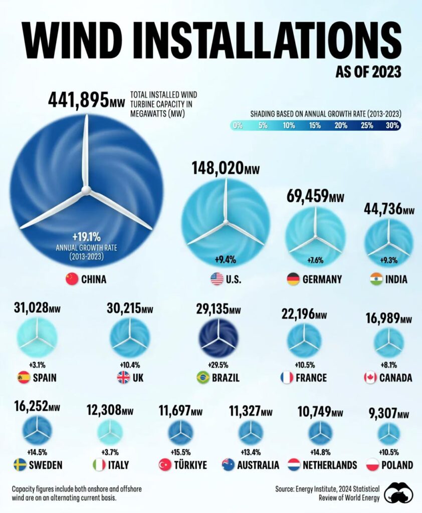 Other nations are also moving fast: Brazil (+29.5%), Türkiye (+15.5%), and the Netherlands (+14.8%) are showing remarkable growth. But India’s steady progress has drawn international recognition, especially as the government pushes for domestic turbine manufacturing and attracts global clean-tech investors.