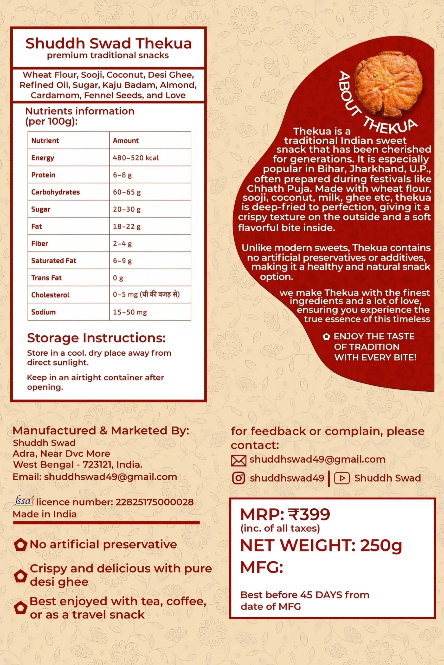 It all started when Jayanta, then a teenager, fell sick after eating thekua — Bihar’s most loved festive snack — from a roadside stall. The incident made him realize that while Indians crave traditional flavors, what’s missing is hygiene, quality, and year-round availability. He dreamt of changing that — of making clean, authentic, and affordable desi snacks available across India.