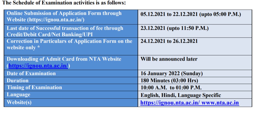 NEW DELHI: Registration for the Indira Gandhi National Open University (IGNOU) PhD admission exam has opened on the national testing agency’s official website (NTA). The application forms are available on the NTA’s official website – www.nta.ac.in . Candidates must complete and submit the application forms by December 22. The examination will take place on January 16, 2022.