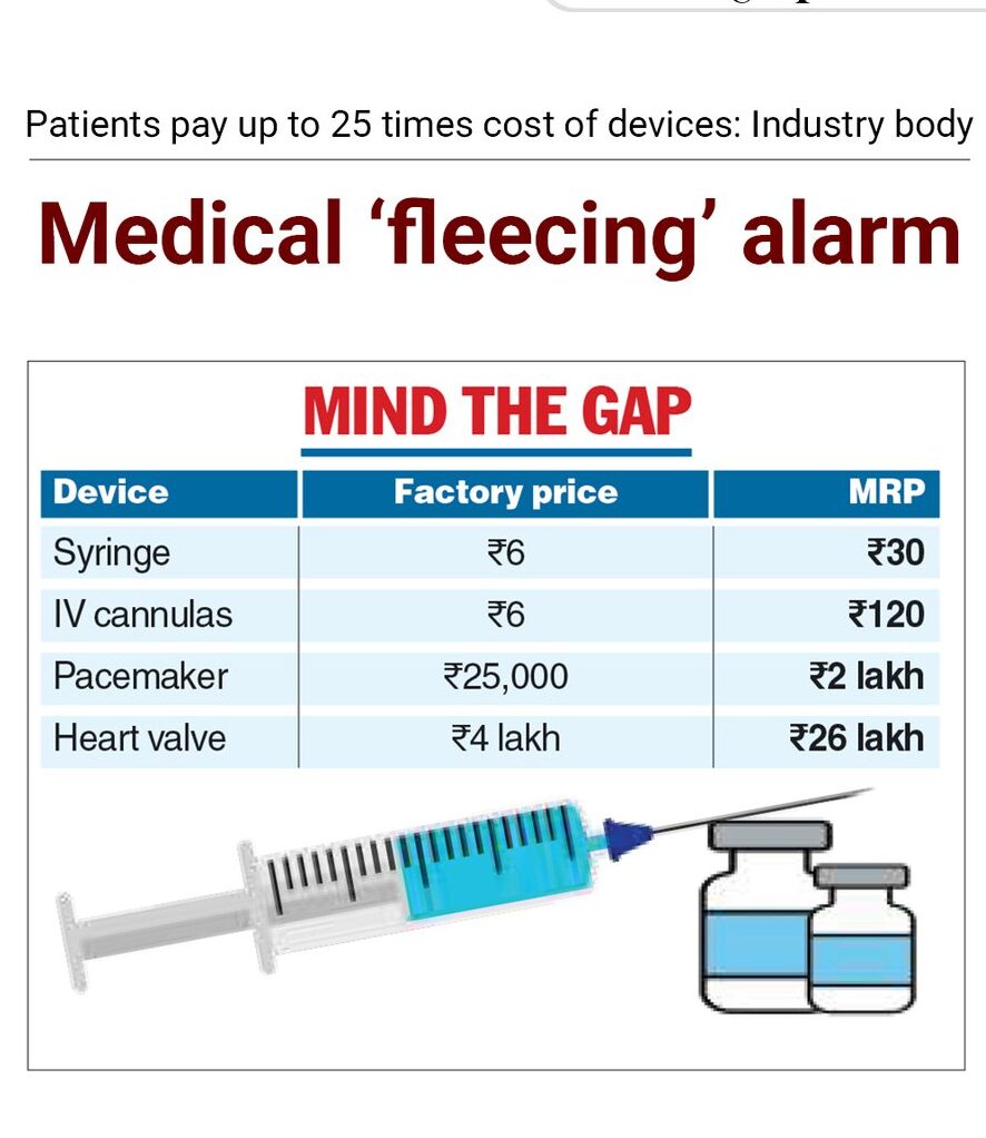 A startling revelation has brought India’s healthcare pricing system under intense scrutiny. According to industry inputs shared with the government, patients in India are being forced to pay up to 25 times the actual factory or import cost of medical devices — raising serious concerns about transparency, ethics, and affordability in healthcare.The issue, highlighted by Association of Indian Medical Device Industry, has triggered what many are now calling a “medical fleecing” crisis.