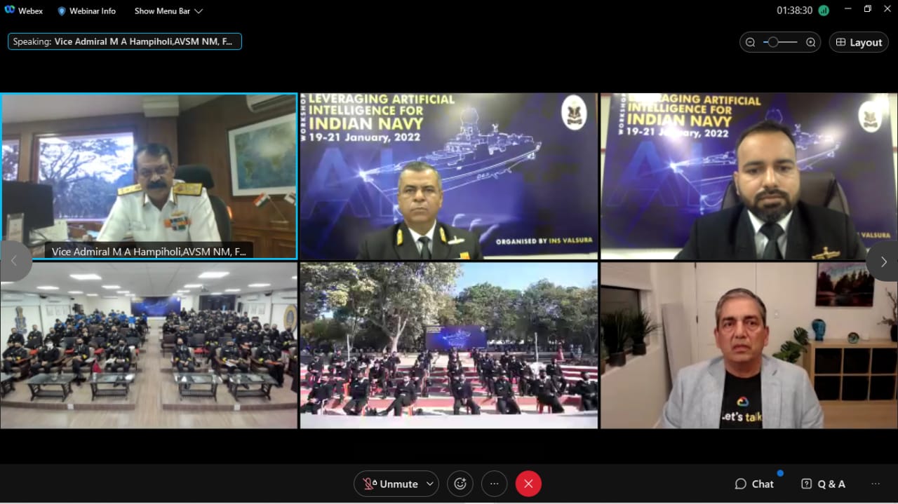 NEW DELHI: Indian Navy’s premier technical training institute INS Valsura organised a workshop on the contemporary topic ‘Leveraging Artificial Intelligence (Al) for Indian Navy‘ from 19 to 21 Jan 2022.