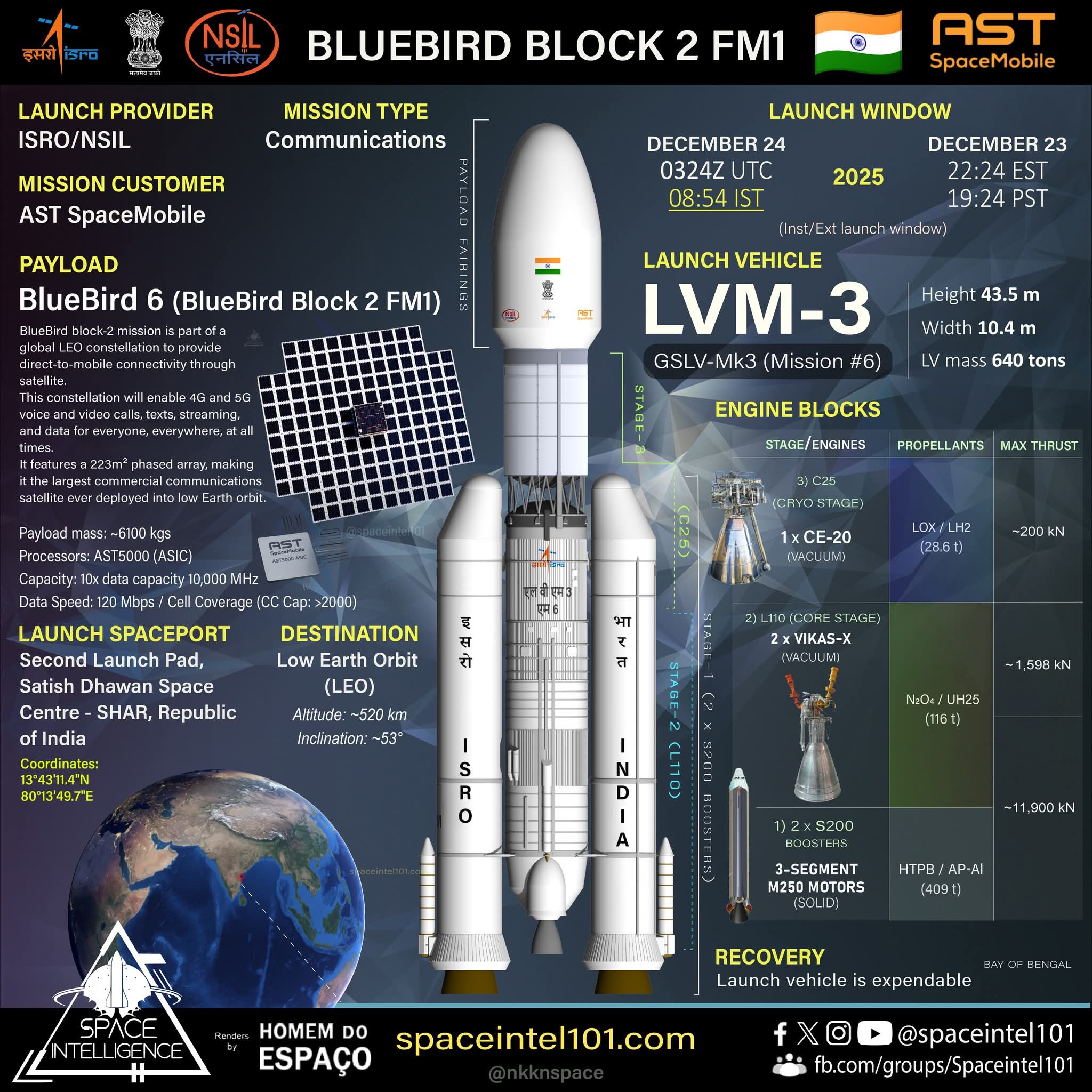 BlueBird Block-2 is the heaviest payload ever deployed by ISRO’s LVM3 rocket, weighing a massive 6,100 kilograms. This breaks ISRO’s previous record of 4,400 kg, held by the CMS-03 communication satellite launched earlier.
