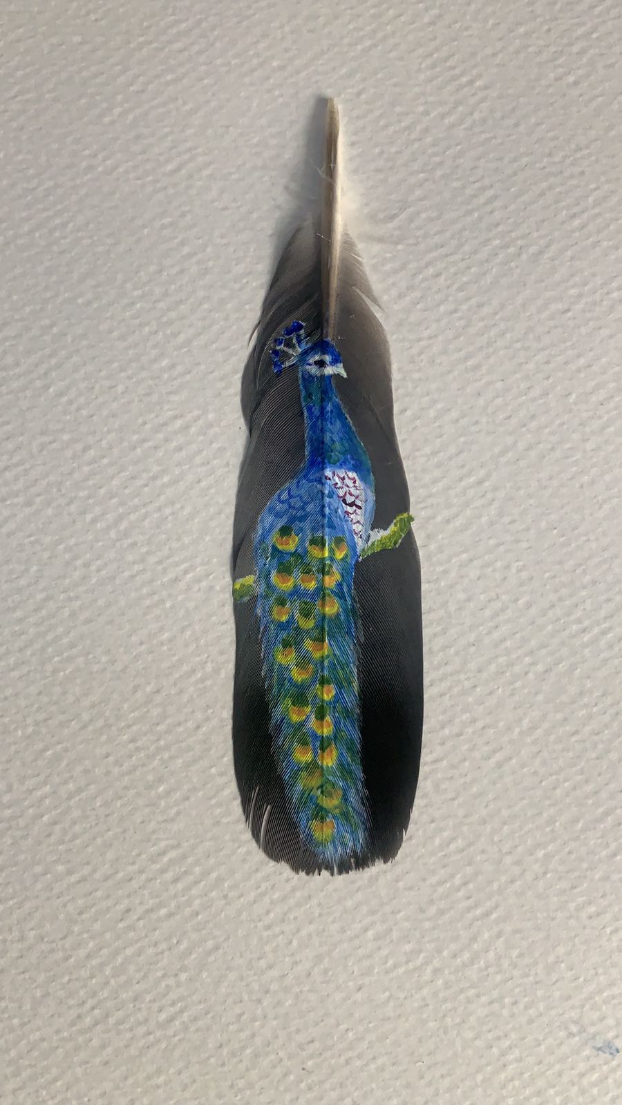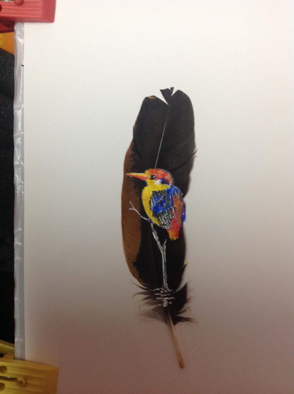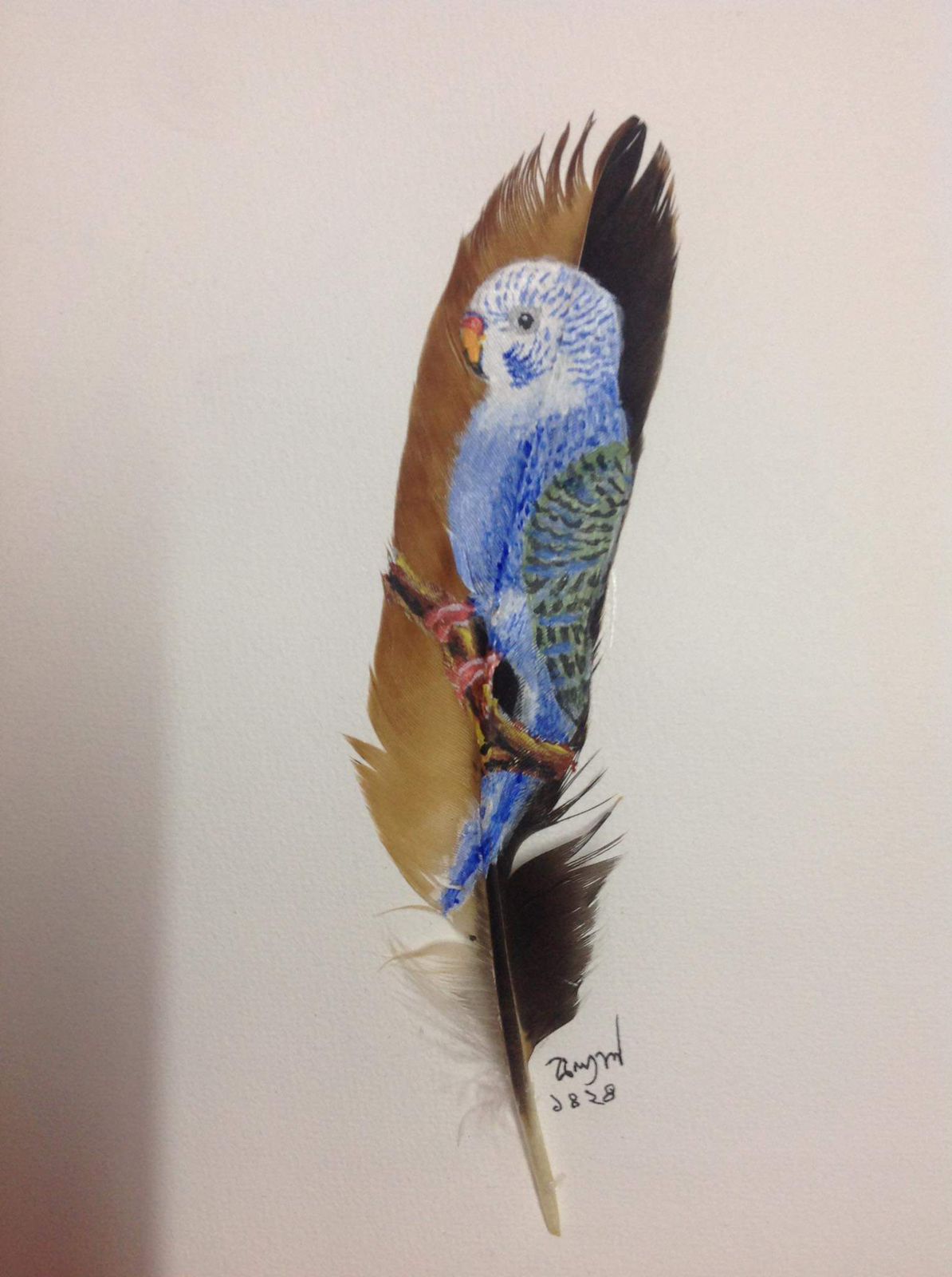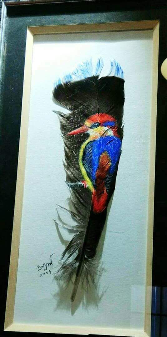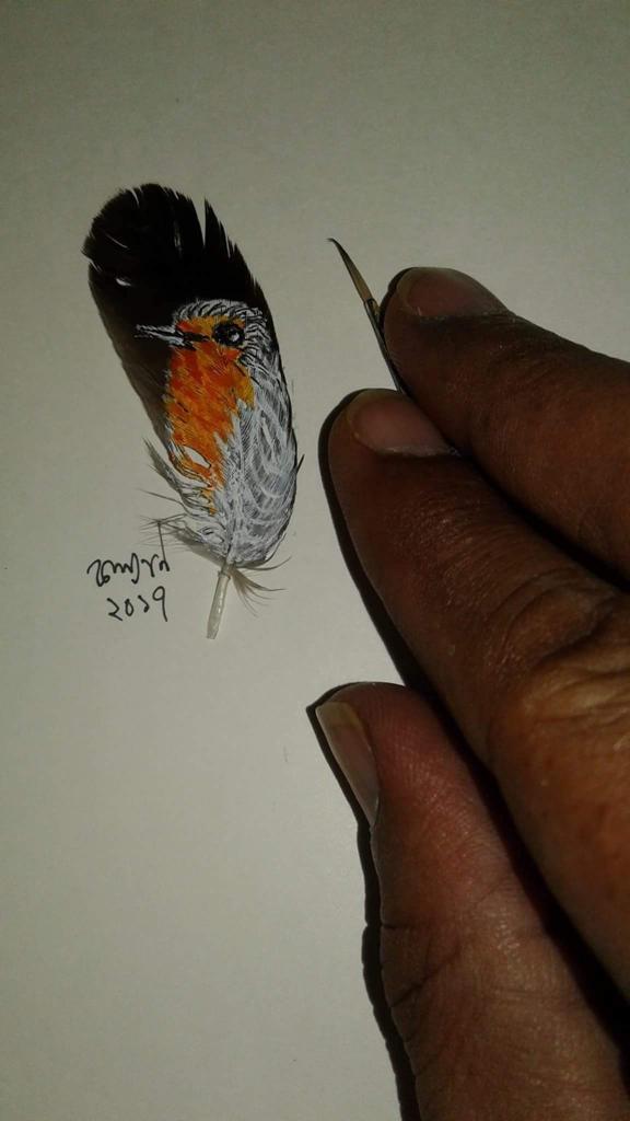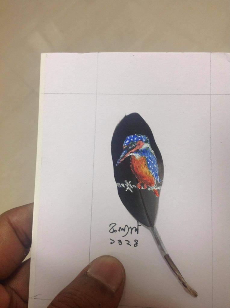 Mukhopadhyay is an artist par excellence who takes few minutes to complete his art of the feather of the bird. He mostly uses acrylic colours for his art.