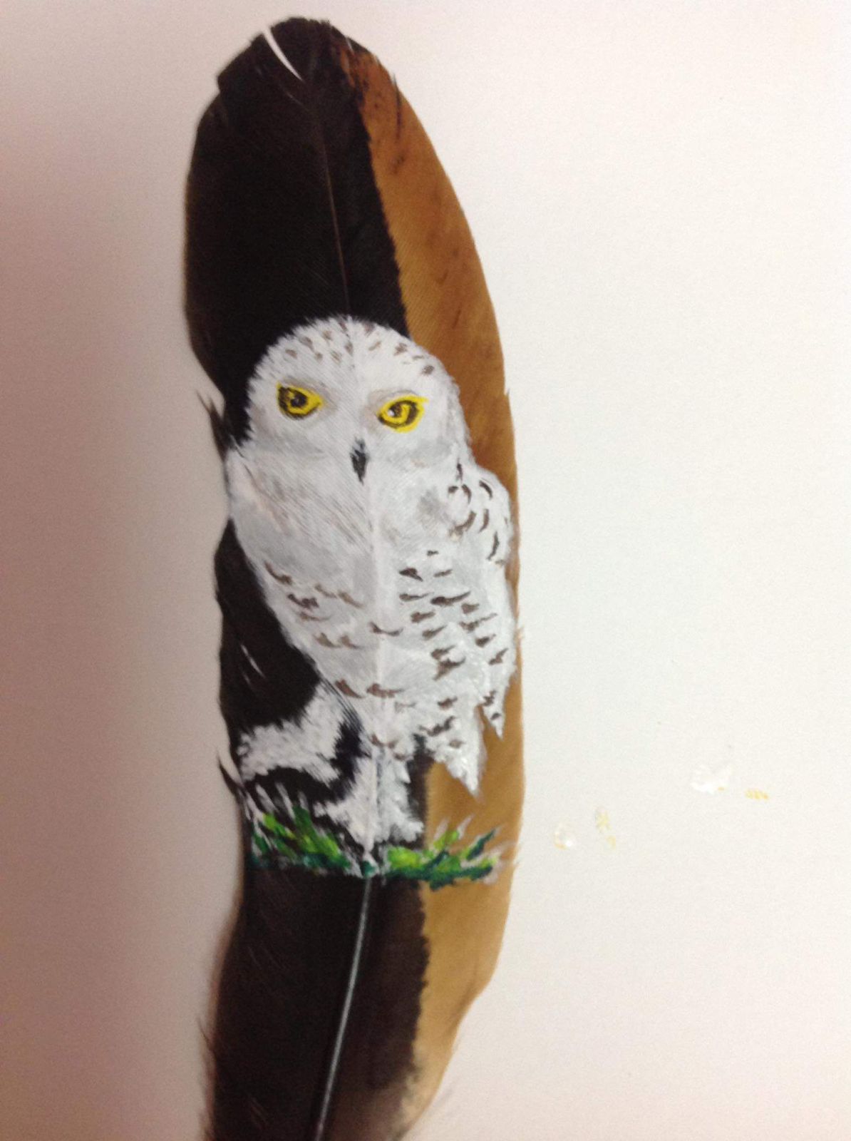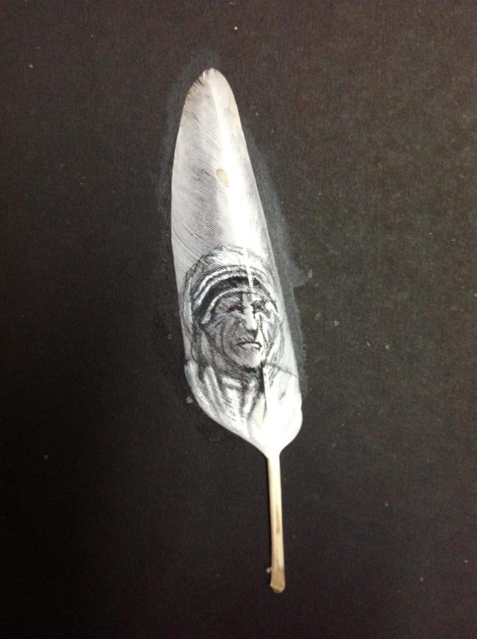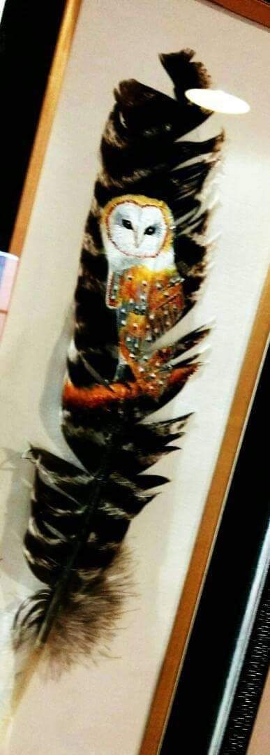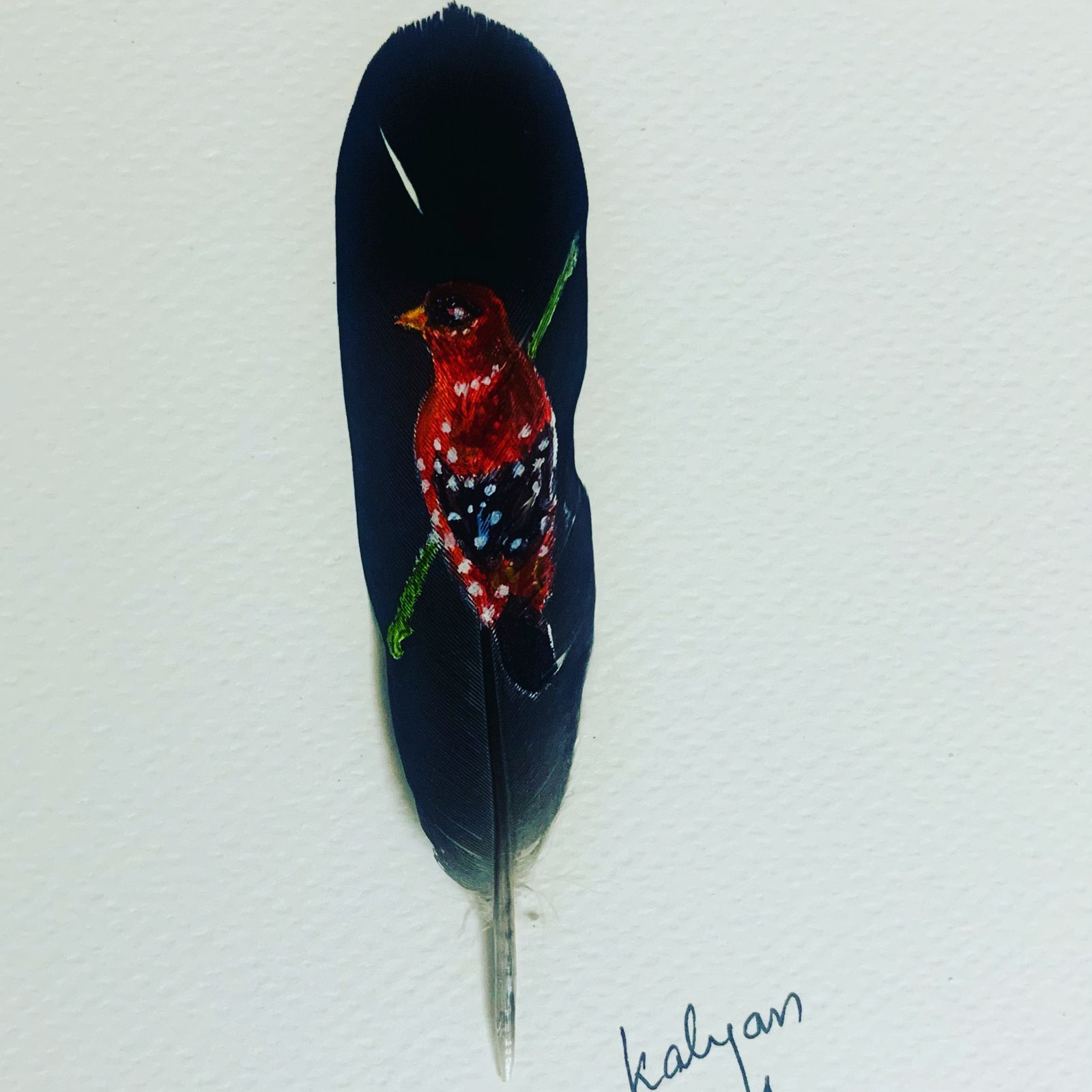 The talent of drawing beautiful birds on the feathers of birds that have been collected from the ground. Mukhopadhyay in his free time picks fallen feathers of mostly Turkey, Koel and Pigeons and give them a new life by painting a beautiful picture of a bird over it.