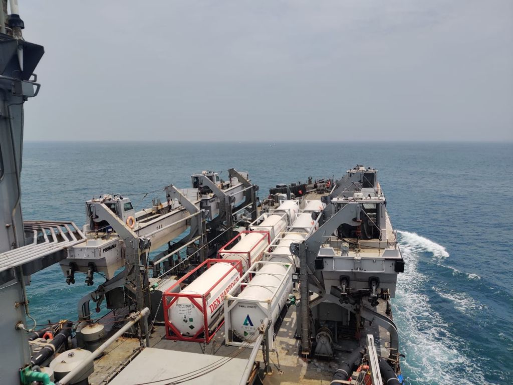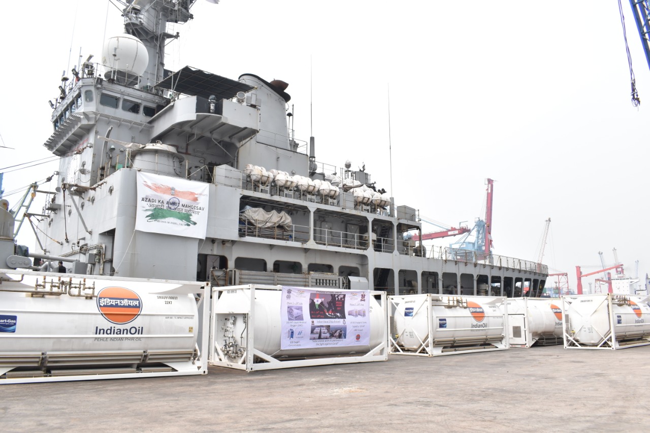 Previously, on July 24, 2021, the same ship trans-shipped medical aid, delivering 05 Liquid Medical Oxygen (LMO) containers (100 MT) and 300 Oxygen Concentrators to Indonesia.