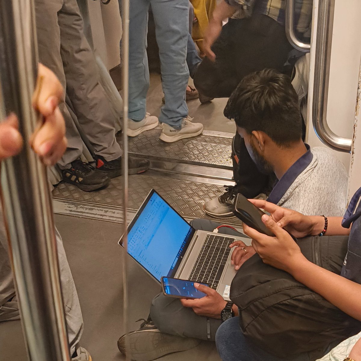 “Saw this guy in the metro. Got a call from his manager and immediately opened his laptop, sat on the floor, and started finishing his work.”