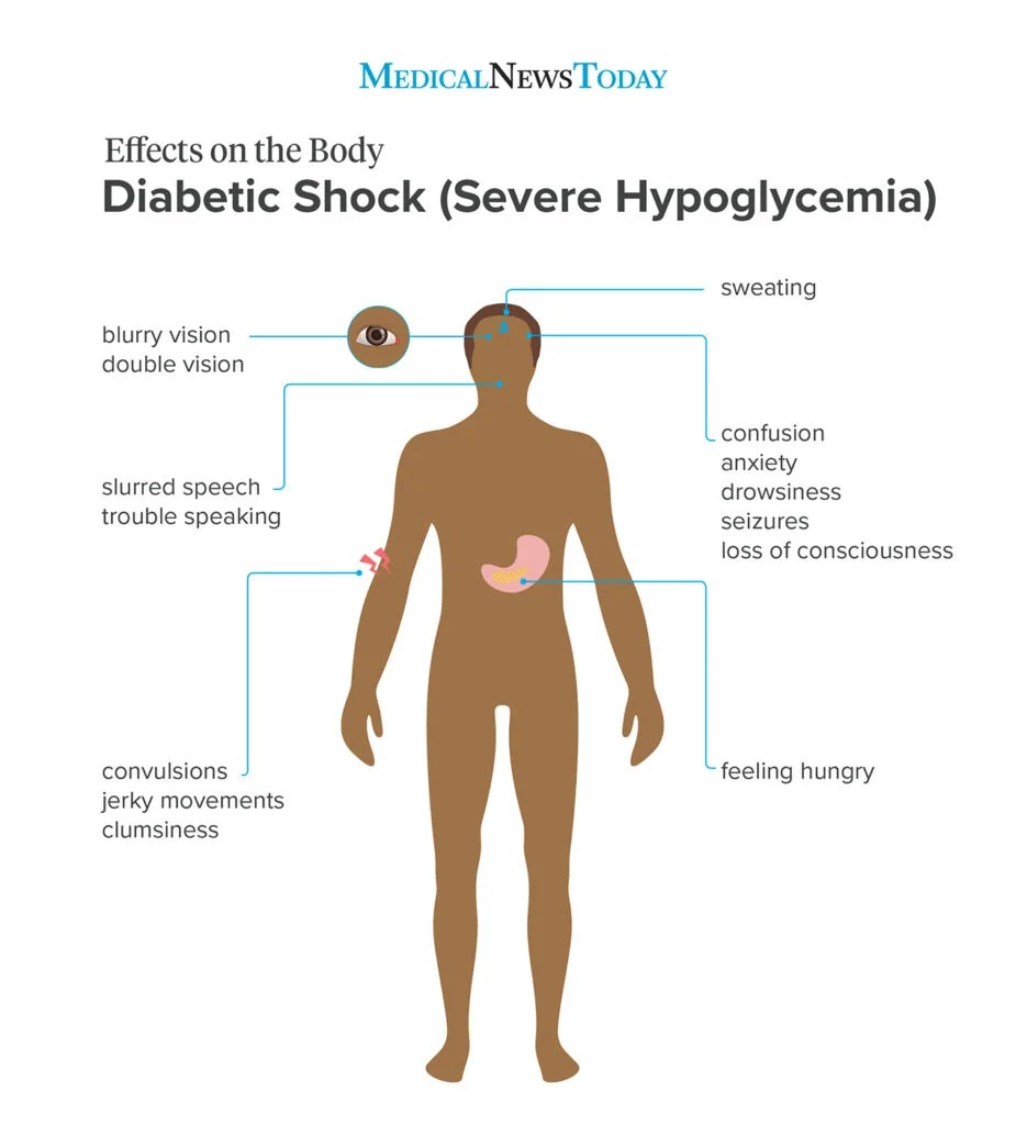 Severe low blood sugar (hypoglycaemia) – often in people taking insulin or certain medications.